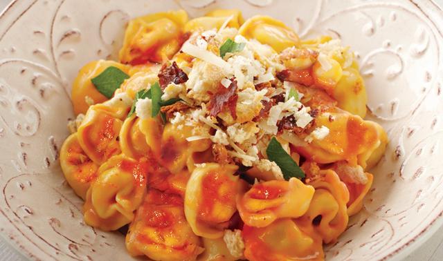 Tortellini With Pancetta In Tomato Basil Cream Sauce