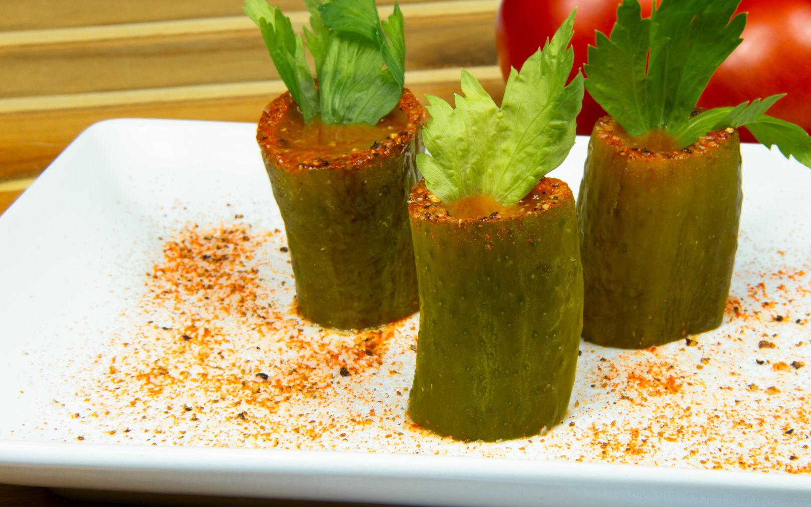 2. Chill the Bloody Mary in the refrigerator while prepping the pickles.