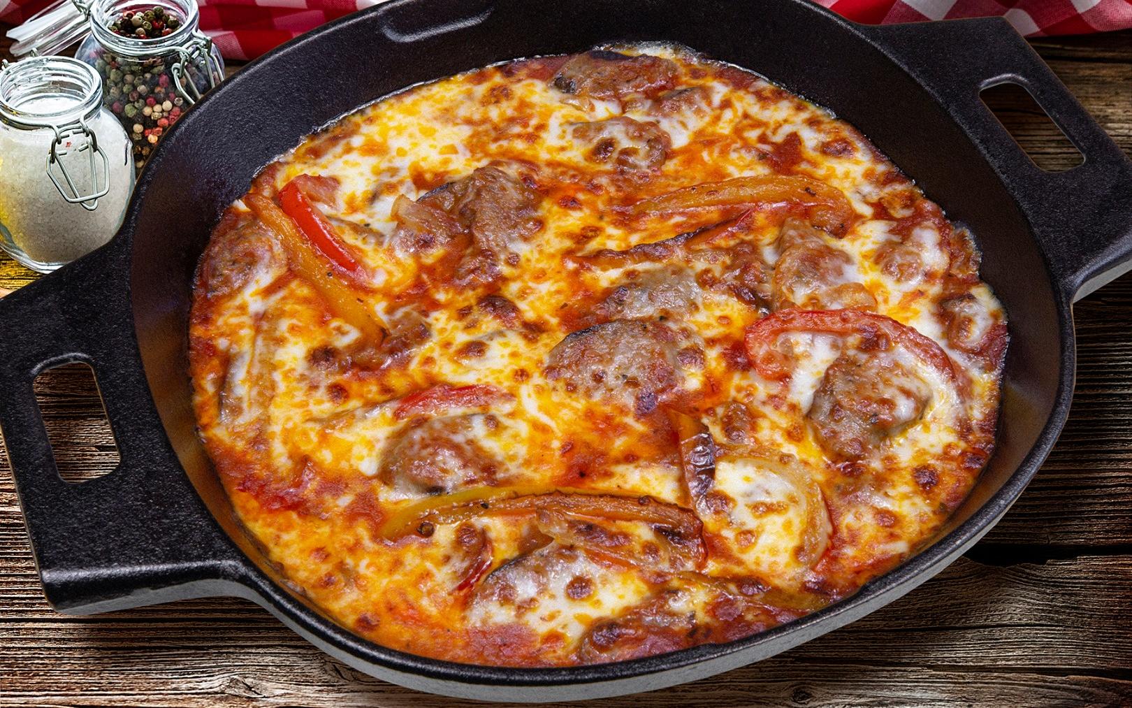 5. Sprinkle cheese evenly over sausage, place lid on skillet, and cook on medium-high for 10 minutes until sauce is heated through and cheese is melted.