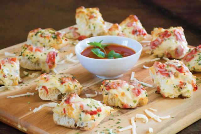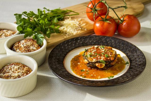 - Spread a layer of Aunt Mary Ann’s Sunday Marinara sauce onto the chicken followed by the provolone and basil.