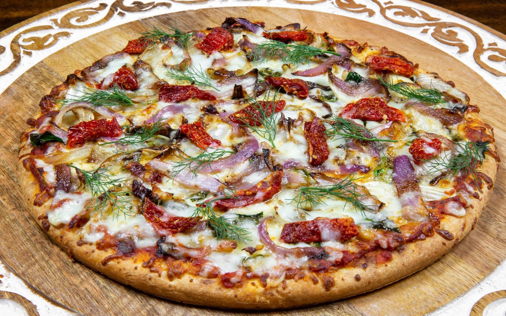 - Spread fennel, onion, and sun-dried tomato evenly over the spinach, then top with the remaining half cup of mozzarella cheese.