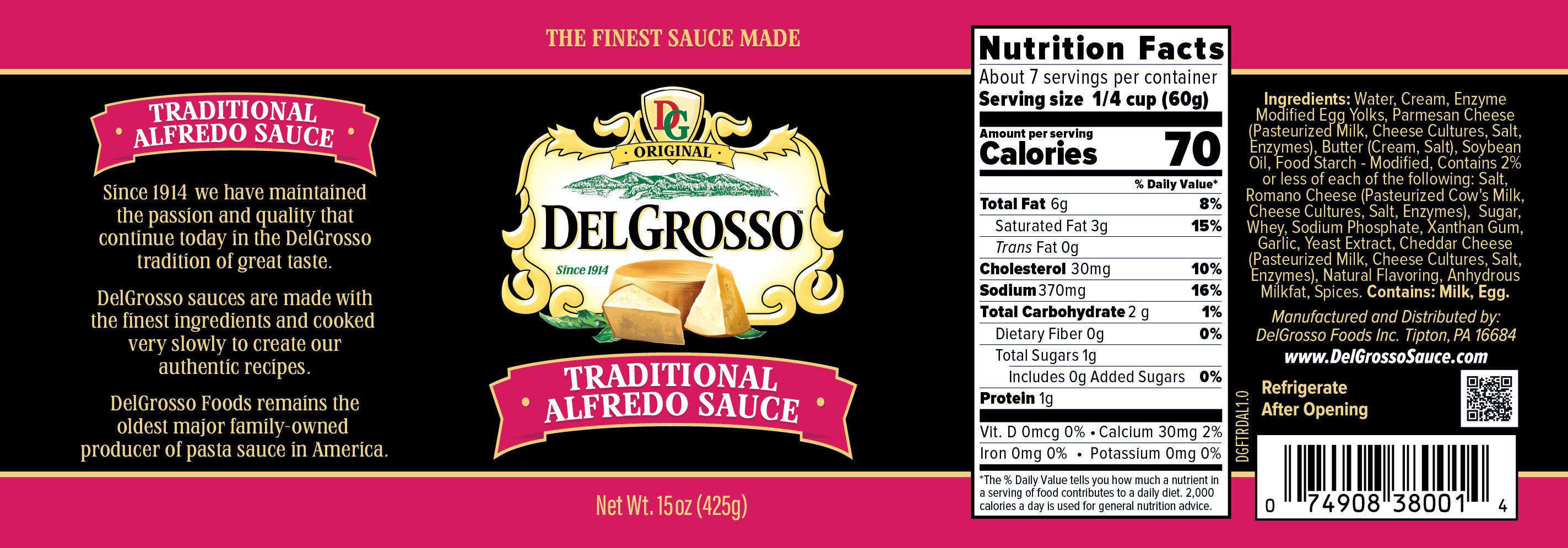 Savor the classic, comforting flavor of DelGrosso Traditional Alfredo Sauce. Enjoy the smooth, creamy taste – a timeless choice for your favorite pasta dishes.