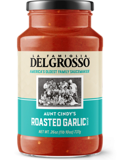 a jar of DelGrosso's Roasted Garlic Gala sauce