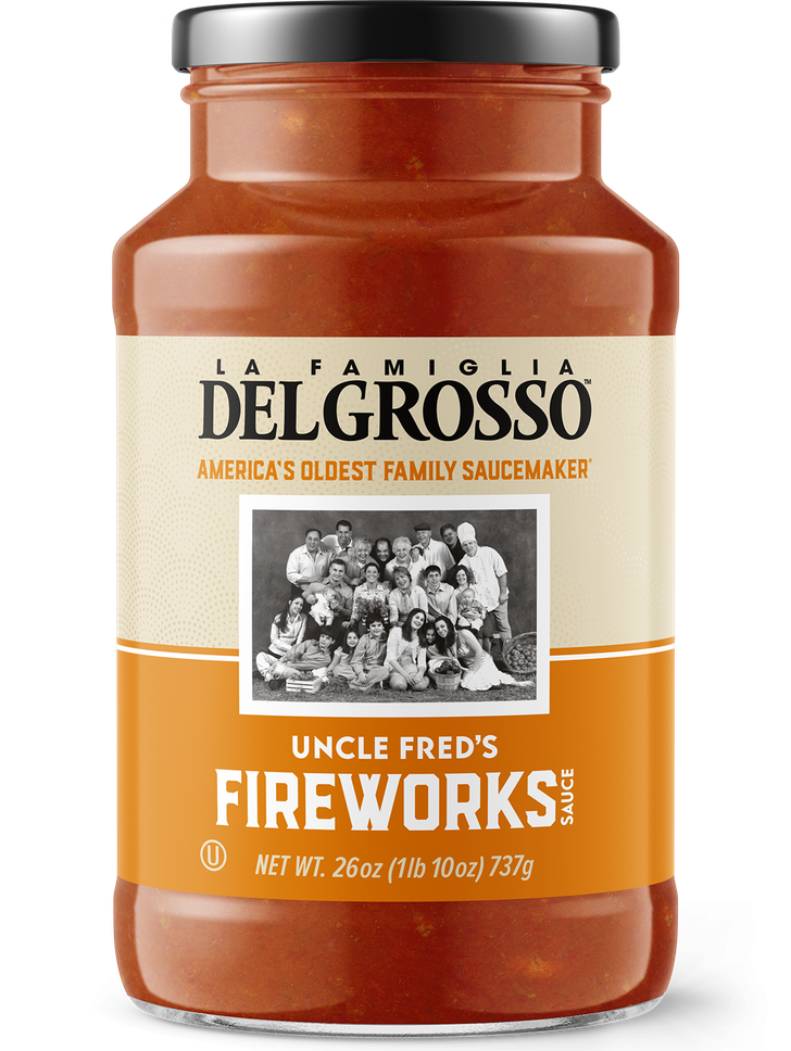 Every 4th of July, crowds gather for the fireworks at DelGrosso's Park. Back in the kitchen, our family lines up for a taste of Uncle Fred's Fireworks sauce. With zucchini, garlic, onions, and spices, it's now a tangy, tasty, year-round favorite.